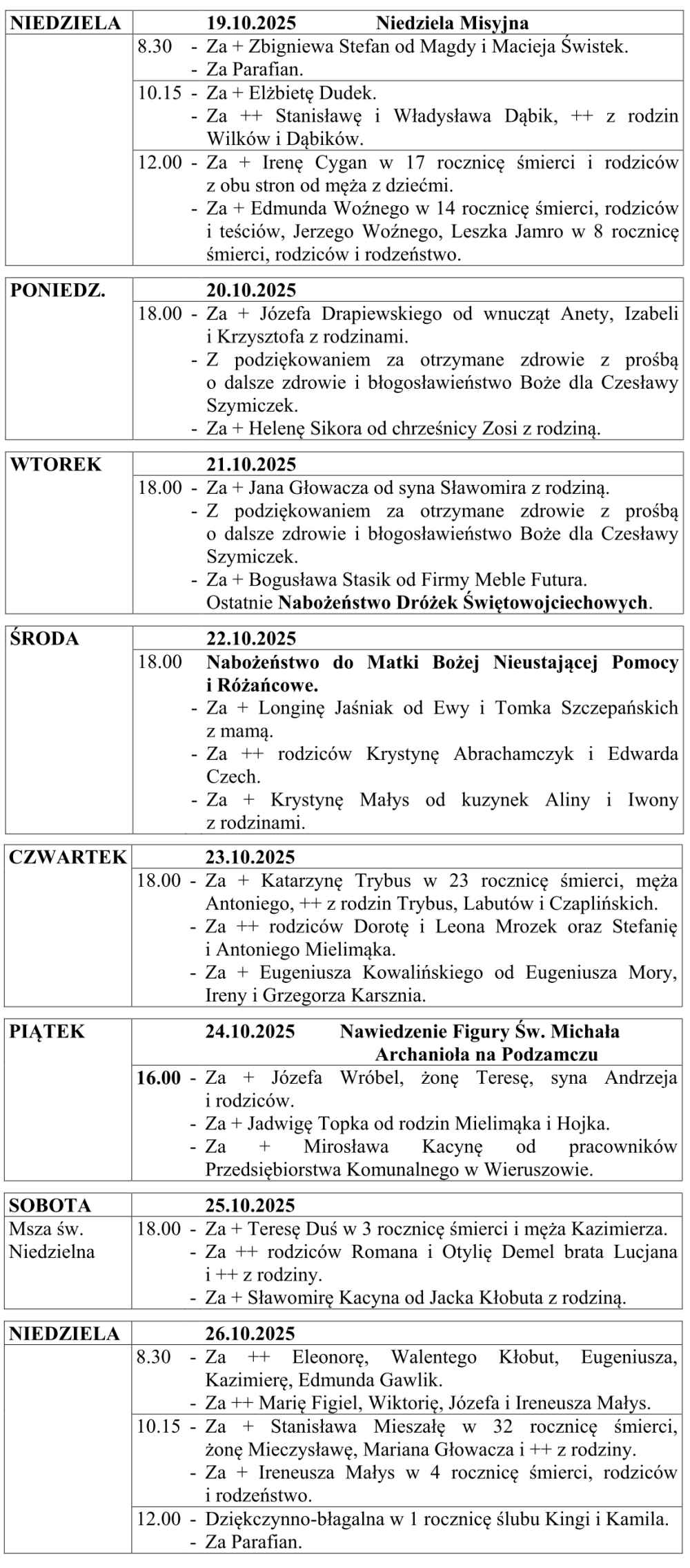 XXIX NIEDZIELA ZWYKŁA – intencje mszalne w pliku .pdf