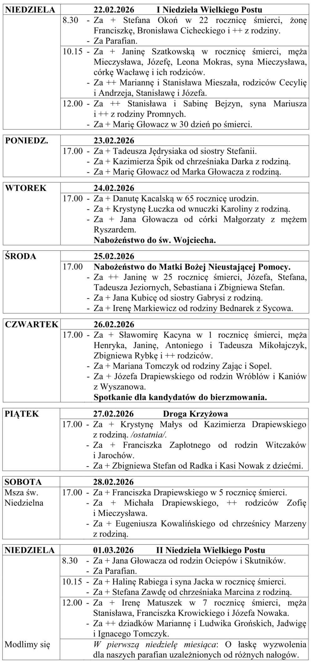 I NIEDZIELA WIELKIEGO POSTU – intencje mszalne w pliku .pdf