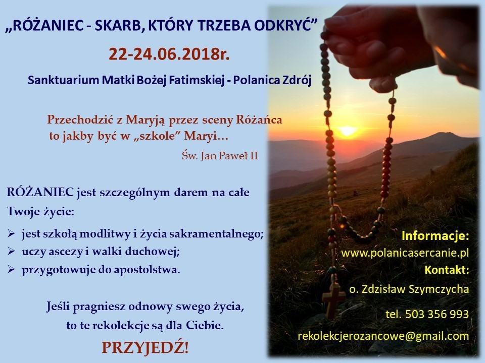 „RÓŻANIEC – SKARB, KTÓRY TRZEBA ODKRYĆ” – rekolekcje w dniach 22-24 czerwca 2018 r.