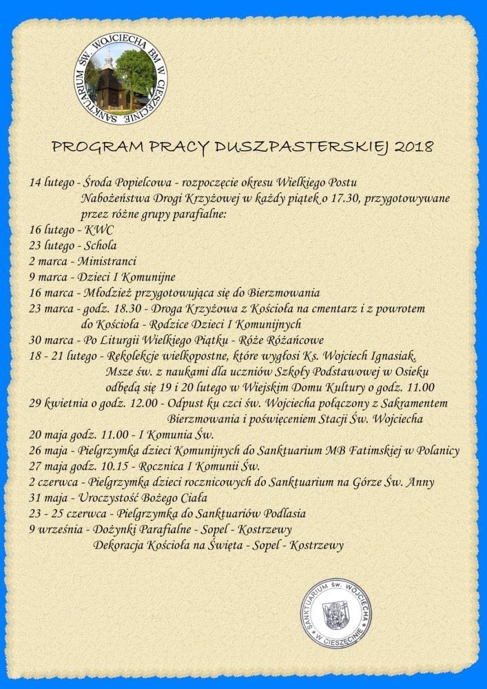 Program pracy duszpasterskiej na 2018 r.