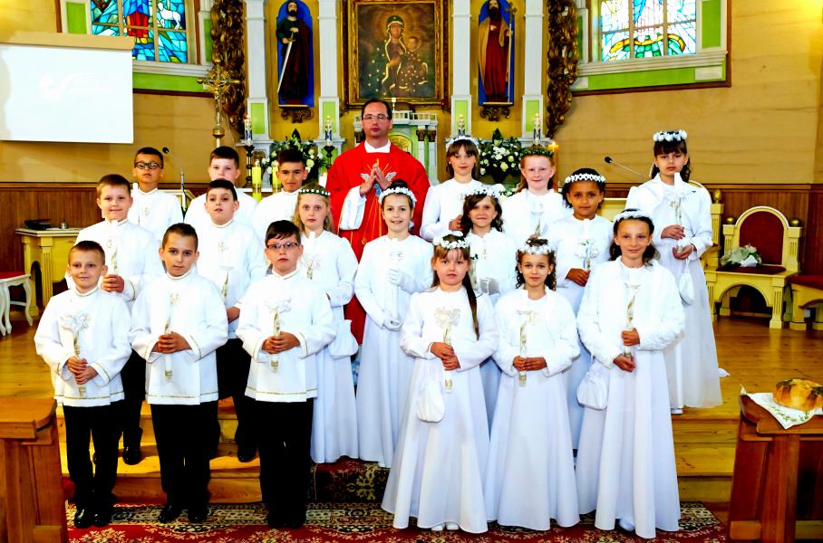 W Uroczystość Zesłania Ducha Świętego odbyła się Uroczystość I Komunii Św. w parafii św. Wojciecha w Cieszęcinie. Następujące dzieci po raz pierwszy przystąpiły do stołu eucharystycznego: Domagała Amelia, Domal Jacek, Foluszczyk Kinga, Jasyk Kinga, Kołodziej Dawid, Kwapisz Wojciech, Lizoń Kamila, Olejniczak Miłosz, Owczarek Błażej, Sadowa Malwina, Syguła Adam, Syguła Klaudia, Włochyńska Zofia, Wojewoda Oliwia, Romanowski Oliwier, Zapłotna Aleksandra, Zawada Bartłomiej, Zawada Klaudia. W następnych dniach dzieci uczestniczyły w białym tygodniu, który zakończył się wspólny wyjazdem do Częstochowy w sobotę, aby na we wspólnej Mszy Św. w kaplicy MB Częstochowskiej podziękować za dar miłości Jezusa eucharystycznego i prosić o dalsze potrzebne łaski dla dzieci i ich rodzin.
