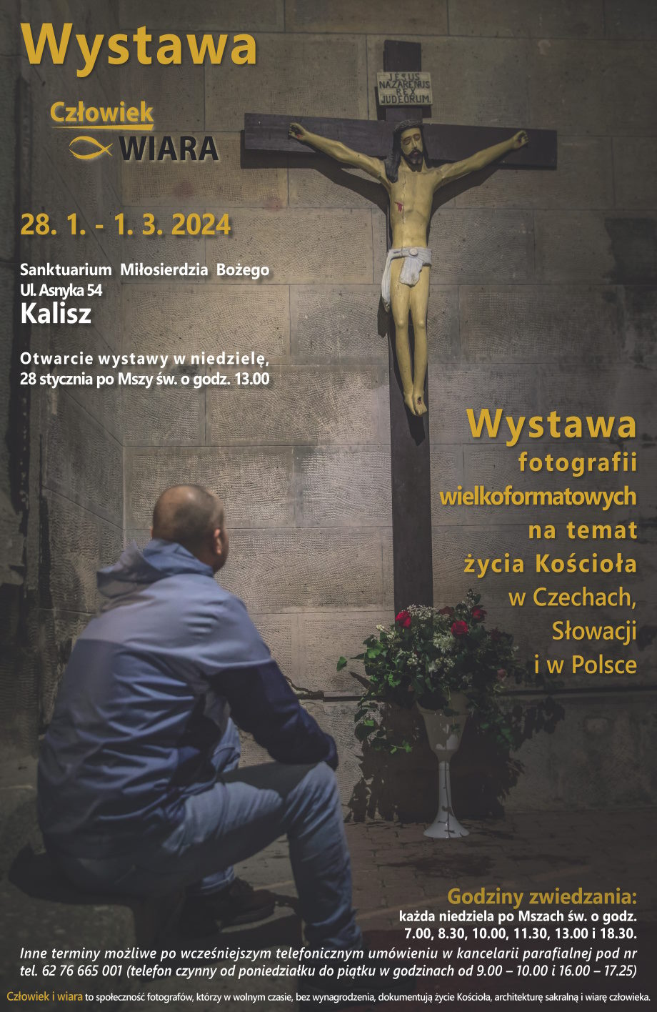 Wystawa została zorganizowana dzięki współpracy kustosza sanktuarium ks. prał. Pawła Kostrzewy i stowarzyszenia „Człowiek i Wiara”. Ekspozycja składa się z 75 zdjęć prezentujących ważne wydarzenia z życia Kościoła, których autorami są fotografowie skupieni w stowarzyszeniu, które zostało założone w 2011 r. w Czechach i obecnie zrzesza blisko 200 członków w Czechach, Słowacji, Egipcie, a od niedawna także w Polsce. Prezentowane fotografie, to niewielki ułamek wielkiego zbioru zdjęć liczącego ponad 670 tys. fotografii, które można zobaczyć na stronie stowarzyszenia. Tematem wiodącym tego ogromnego zbioru jest człowiek i wiara.