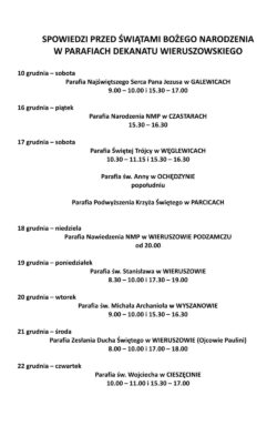 KALENDARZ SPOWIEDZI PRZED ŚWIĄTAMI BOŻEGO NARODZENIA W PARAFIACH DEKANATU WIERUSZOWSKIEGO