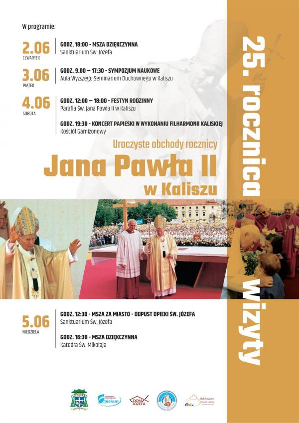 W dniu 4 czerwca 1997 r. miasto Kalisz i cała nasza Diecezja przeżywały radość spotkania z Papieżem Janem Pawłem II. W tym roku obchodzimy 25-tą rocznicę tej wizyty. Pragniemy wyrazić nasze dziękczynienie za pobyt Ojca Świętego w naszej Diecezji i za wszystkie owoce duchowe z niej płynące oraz cały pontyfikat Świętego Papieża Polaka.