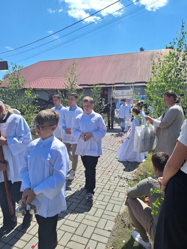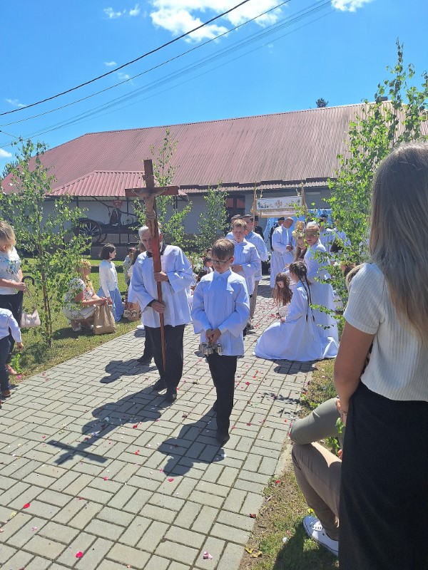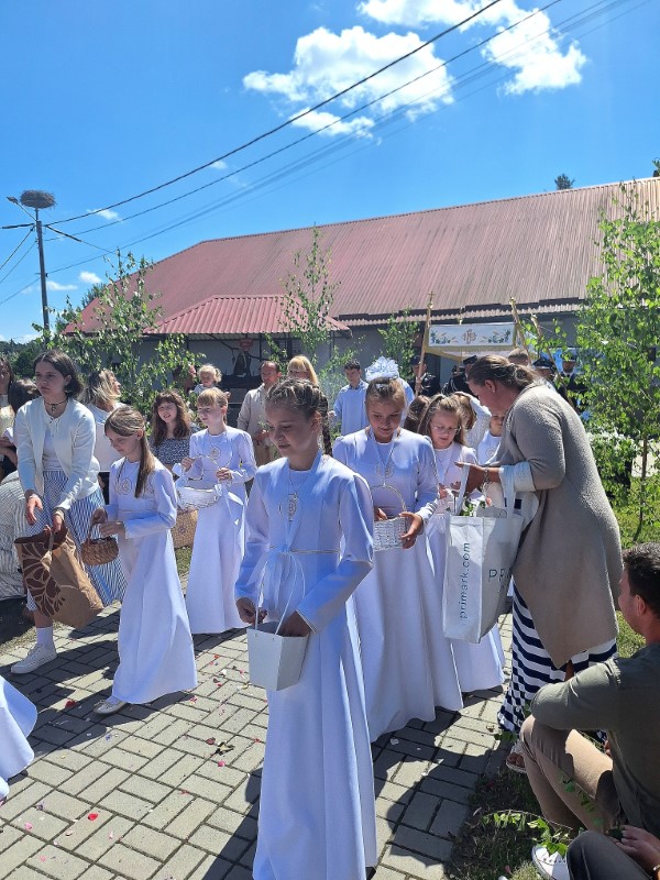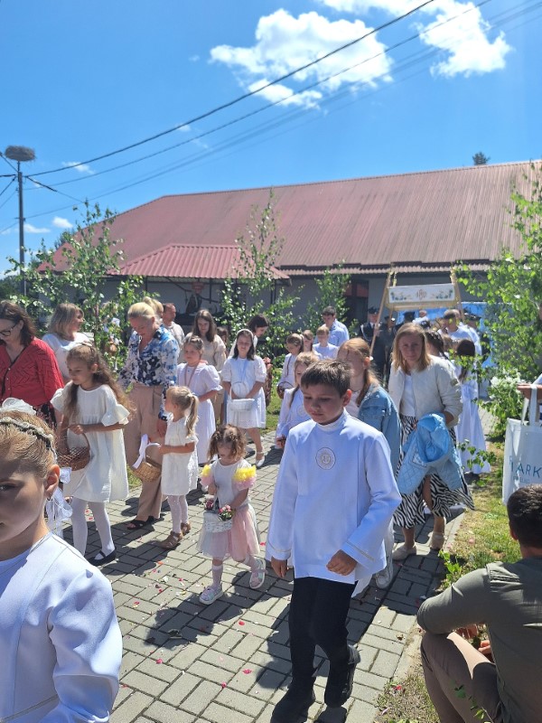 26 czerwca, podczas uroczystego zakończenia Oktawy Bożego Ciała, kultywowaliśmy piękny i głęboko zakorzeniony w naszej tradycji zwyczaj święcenia wianków i kwiatów. Dawniej takie poświęcone wianki wieszano nad drzwiami domów, przy świętych obrazach czy w budynkach gospodarczych. Wierzono, że chronią przed złem, burzami, chorobami i wszelkim nieszczęściem. W tradycji Kościoła wianki to znak wdzięczności Bogu za Jego dary – za plony, zioła, kwiaty i całe piękno stworzenia. Panie, Boże wszechświata, Ty sprawiasz, że na ziemi rosną trawy, zioła i zboża na pożywienie ludziom i zwierzętom. Od Ciebie pochodzi obfitość wody i promieni słońca dla pól, sadów, ogrodów, łąk, pastwisk i lasów, aby wszystko, co się zieleni i rozkwita, owocowało, gdy przyjdzie czas zbiorów. Prosimy Cię, pobłogosław przyniesione ku Twojej czci pierwociny zieleni tego roku: młode pędy zbóż, trawy, zioła i kwiaty. Zachowaj je od suszy, gradu, powodzi i wszelkiej szkody, aby wszędzie wzrastały, radowały oczy, przynosiły obfity owoc i mogły służyć zdrowiu ludzi i zwierząt. Spraw także, abyśmy trwając w Chrystusie jak gałązki w winnym krzewie i umocnieni Jego miłością w Eucharystii, mogli przynosić owoce dobrych czynów ku Twojej chwale. Przez Chrystusa, Pana naszego. Amen. Na zakończenie oktawy Bożego Ciała panie przyniosły własnoręcznie wykonane, przepiękne wianki - dziękujemy za ten wyraz wiary i tradycji.