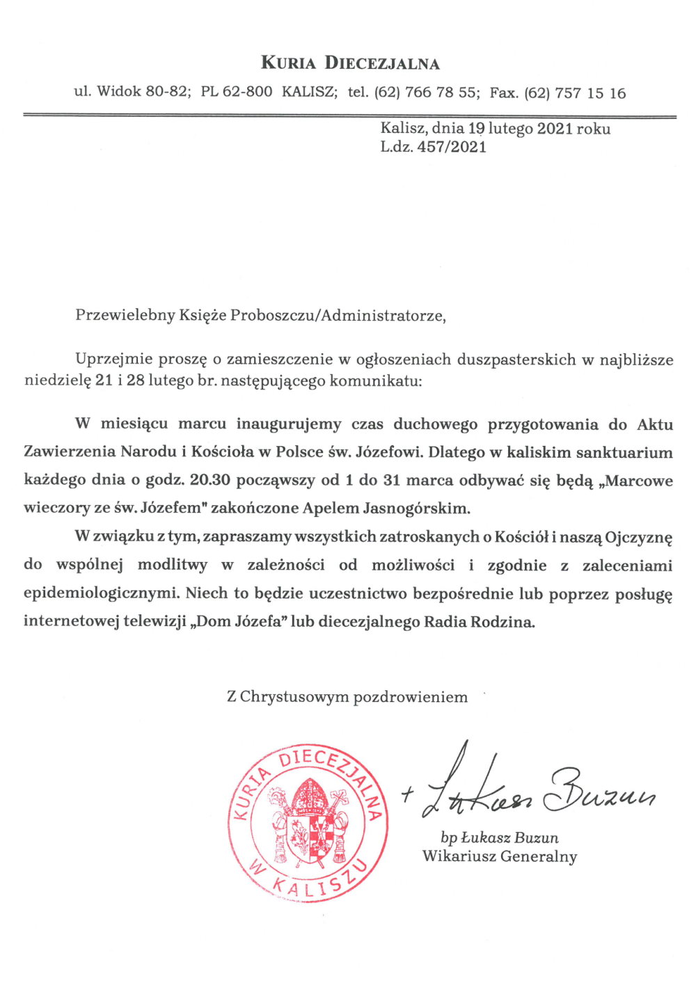 - za pośrednictwem telewizji TRWAM,