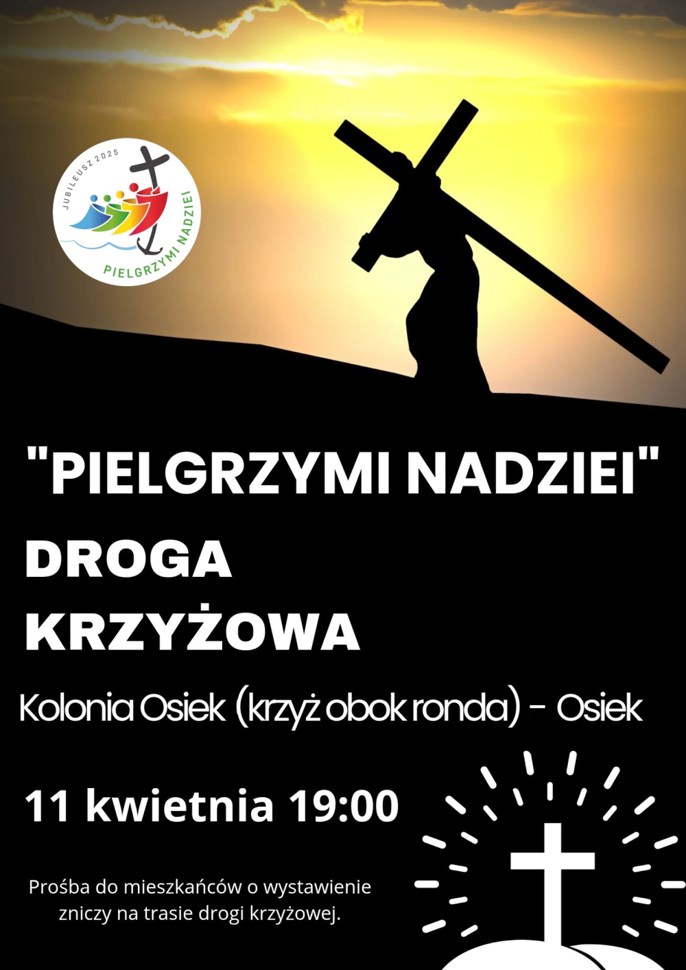 Zachęcamy mieszkańców do wystawienia zniczy na trasie drogi krzyżowej, aby rozświetlić naszą modlitewną wędrówkę.