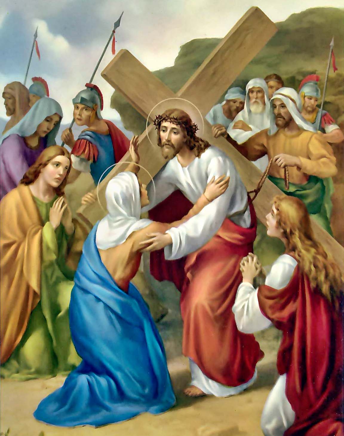 Kochany Panie Jezu, na drodze krzyżowej spotkałeś swoją Mamę. Ona zawsze była blisko Ciebie. W swoim sercu razem z Tobą dźwigała krzyż.