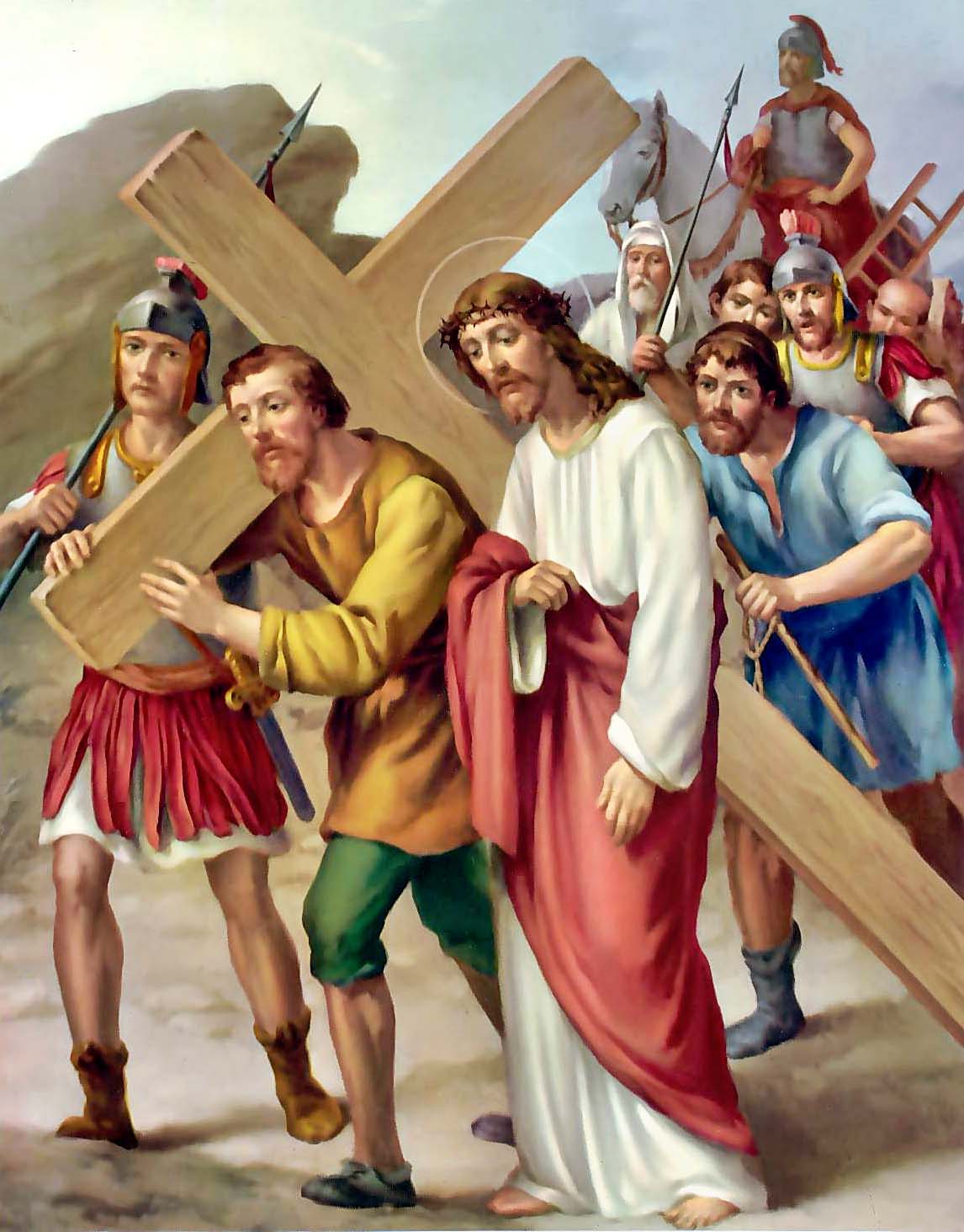 Panie Jezu, Twój krzyż jest ciężki. Trudno go dźwigać, bo jesteś już bardzo zmęczony. Pewnie dlatego chętnie przyjmujesz pomoc od Szymona. Jesteś za nią wdzięczny, chociaż on pomagał ci, bo był zmuszony do tego przez żołnierzy.