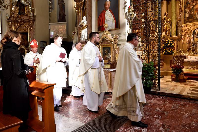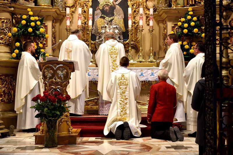 Po wysłuchaniu w/w referatów nauczyciele udali się do Bazyliki Św. Józefa, by uczestniczyć we mszy św. Wszystkich przybyłych na Eucharystię przywitał ksiądz prałat – Jacek Plota, kustosz Kaliskiego Sanktuarium. Mszy Świętej odprawianej m. in. w intencji nauczycieli Diecezji Kaliskiej przewodniczył i homilię wygłosił Biskup Łukasz Buzun.