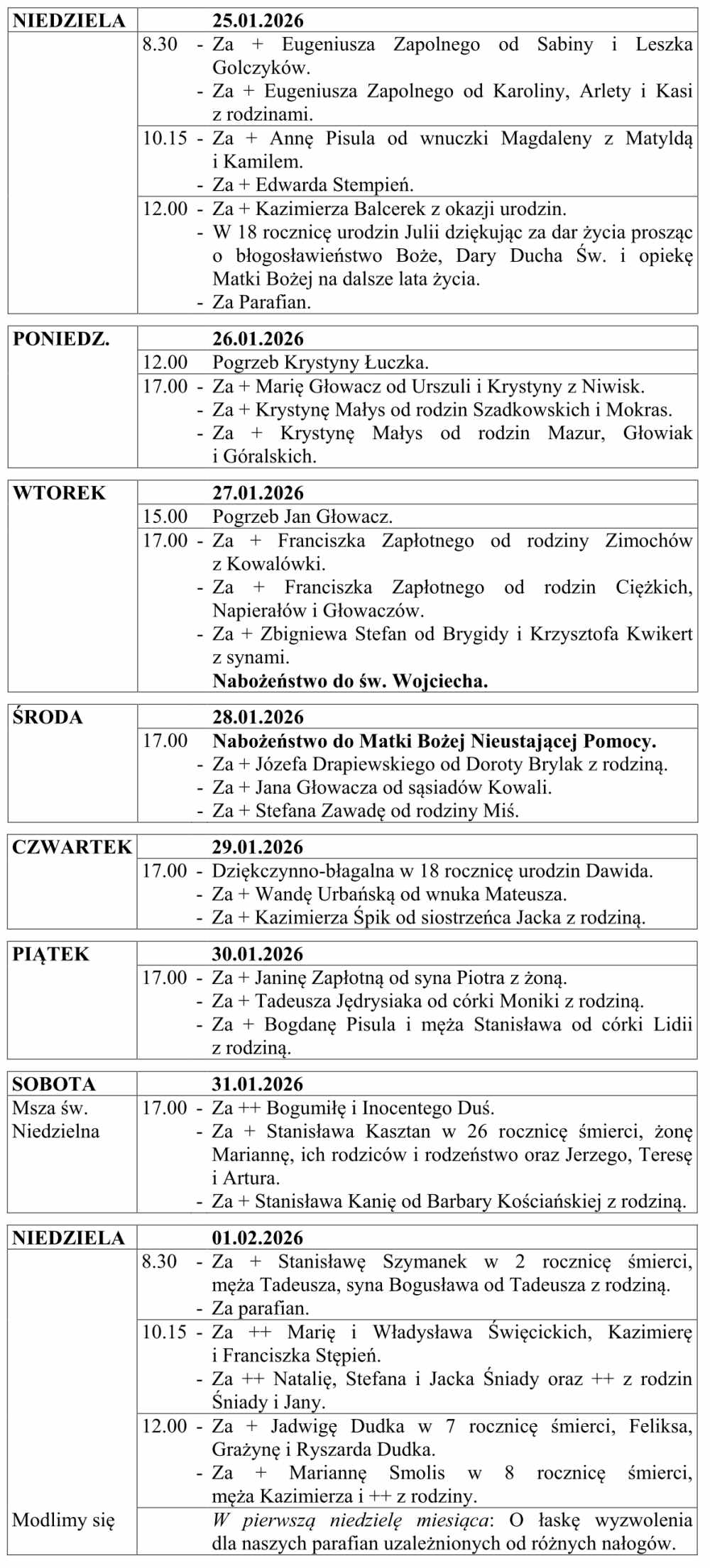III NIEDZIELA ZWYKŁA – intencje mszalne w pliku .pdf