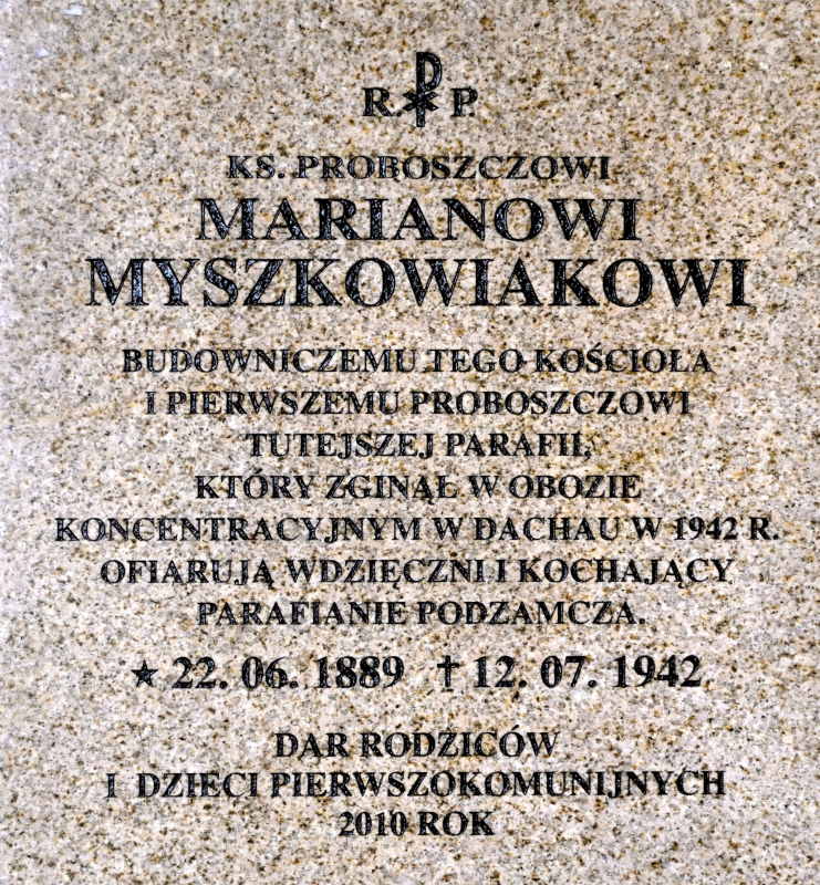 - Ks. Marian Myszkowiak – proboszcz z parafii Wieruszów – Podzamcze, zmarłego 12 VII 1942 r.