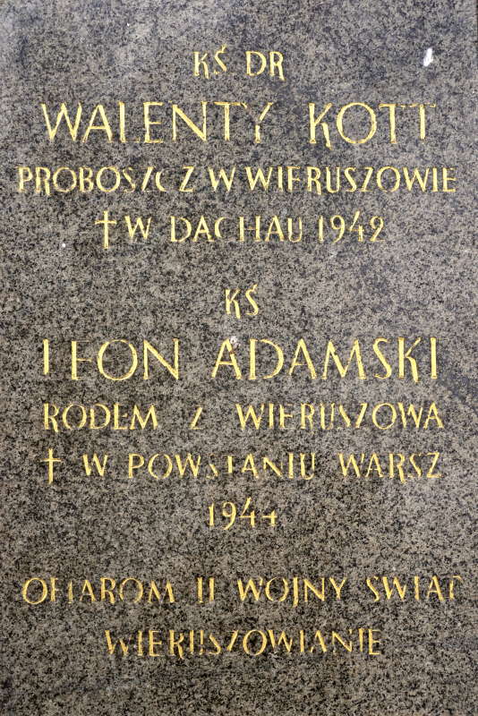 - Ks. dr Walenty Kott – proboszcz z parafii Wieruszów, zmarłego 1942 r.