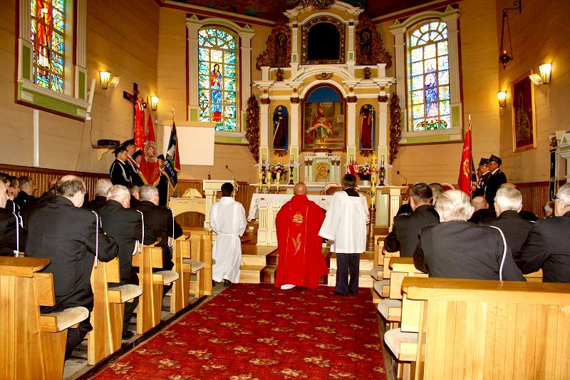 Proboszcz powitał przybyłych strażaków z rodzinami i rozpoczął mszę św., młody strażak – student przeczytał I czytanie mszalne, a po okolicznościowej homilii, starszy strażak odczytał ułożone przez siebie wezwania modlitwy wiernych, po mszy św. odmówiono Litanię Loretańską.