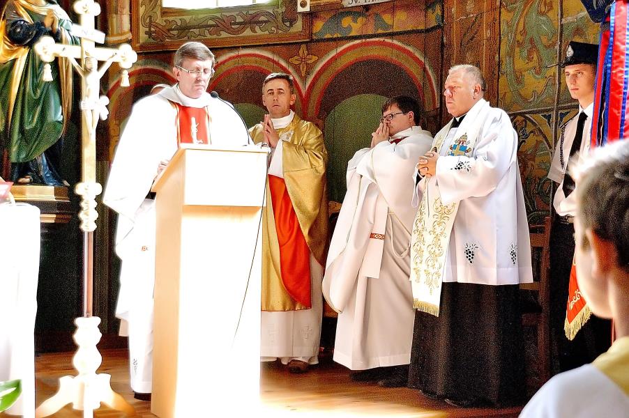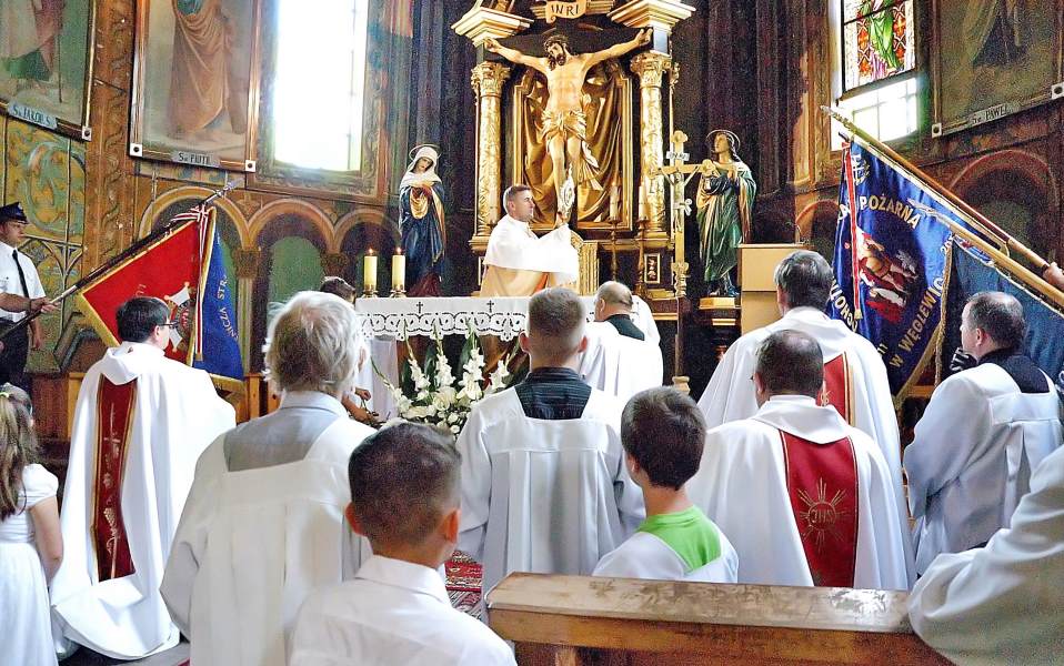 Mszy Odpustowej koncelebrowanej przewodniczył  O. Piotr Polek – Przeor Klasztoru OO. Paulinów w Wieruszowie. Proboszcz węglewickiej parafii prosił podczas Mszy Św. o modlitwę za 162 Pieszą Pielgrzymkę z Wieruszowa i okolic, w intencji parafian i wspomagających remont kościoła, darczyńców indywidualnych i rodziny, także z zagranicy, o przemianę naszych dolegliwości oraz o modlitwę jubilatów XXV- lecia kapłaństwa – O. Przeora i Ks. Przemysława Niezgódkę.  Odpust w Węglewicach zgromadził, jak co roku, bardzo liczną rzeszę wiernych i kapłanów z dekanatów: wołczyńskiego, kępińskiego, bolesławieckiego, wieruszowskiego i Archidiecezji Częstochowskiej.