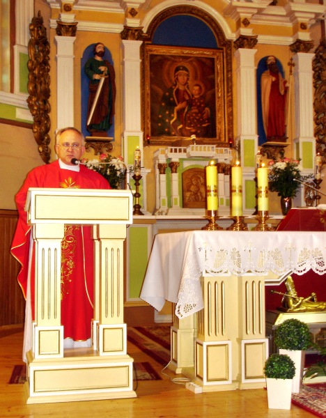 O godzinie 12.00 rozpoczęła się uroczysta suma odpustowa ku czci św. Walentego w intencji dziękczynnej za jego opiekę nad naszą parafią i okolicą. Dla uświetnienia uroczystości przybyli strażacy miejscowej jednostki OSP z pocztem sztandarowym na czele oraz wielu kramarzy. Mszy Św. przewodniczył  Prowincjał Zgromadzenia Najświętszych Serc Jezusa i Maryi oraz Wieczystej Adoracji Najświętszego Sakramentu – o. Piotr Budrewicz, a współkoncelebrował administrator parafii o. Mieczysław Rećko – sercanin z Cieszęcina. W homilii koncelebrans przypomniał o Wielkiej aż po grób Miłości w różnych jej wymiarach ze  szczególnym zaznaczeniem wymiaru oddania życia z miłości jak Chrystus, którego św. Walenty naśladował.