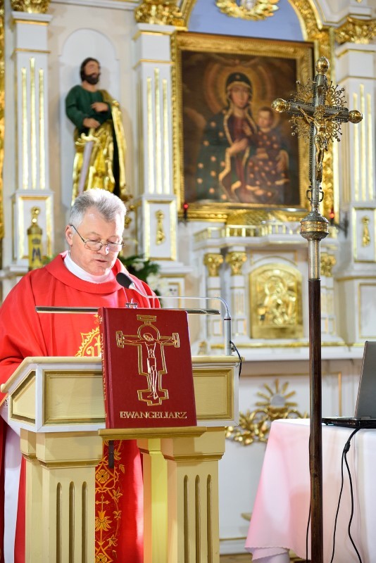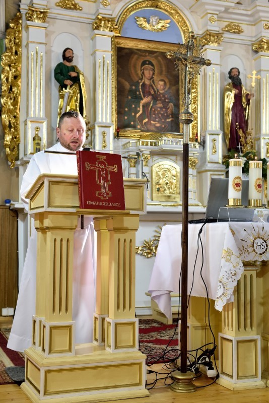 Boga uwielbia wraz z zebranym ludem.