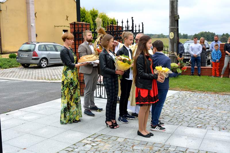 W to wydarzenie zaangażowali się też uczniowie Szkoły Podstawowej w Osieku niosąc owoce i dary ziemi.