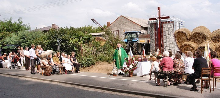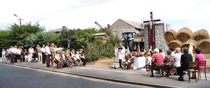 I oto dziś – 7 sierpnia 2011 r. został poświecony nowy piękny, jak widać na fotografiach, sporym wysiłkiem i zaangażowaniem całej wioski ufundowany i wykonany krzyż przydrożny.