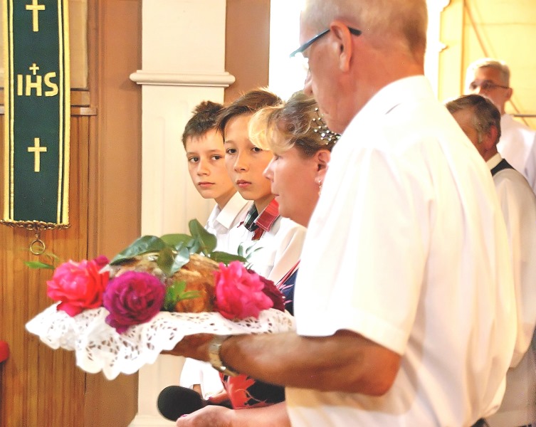 Przedstawiciele Rady Parafialnej powitali nowego proboszcza chlebem i solą oraz słowami: