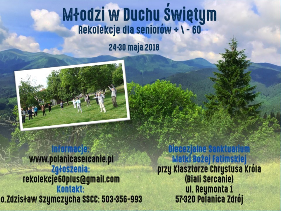 1. MŁODZI W DUCHU ŚWIĘTYM”. REKOLEKCJE +/- 60 – w terminie: 24-30 maja 2018 r.
