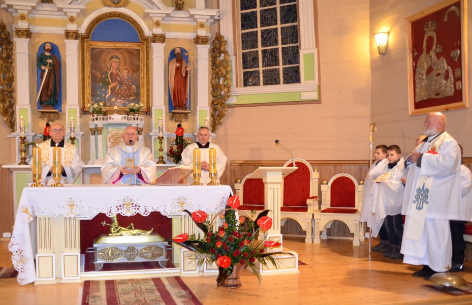 Tym chrześcijańskim pozdrowieniem  witamy  księdza biskupa w naszej Cieszęcińskiej świątyni. Szczególnie serdecznie przeżywamy dzisiejszą uroczystość gdyż dokładnie dwa lata temu, również w wieczornej porze, przybyła do nas Matka Boża Częstochowska w kopii Jasnogórskiego Wizerunku. Obiecaliśmy wówczas naszej najlepszej Matce, że zadbamy –  jak nasi przodkowie o przekaz wiary następnym pokoleniom.