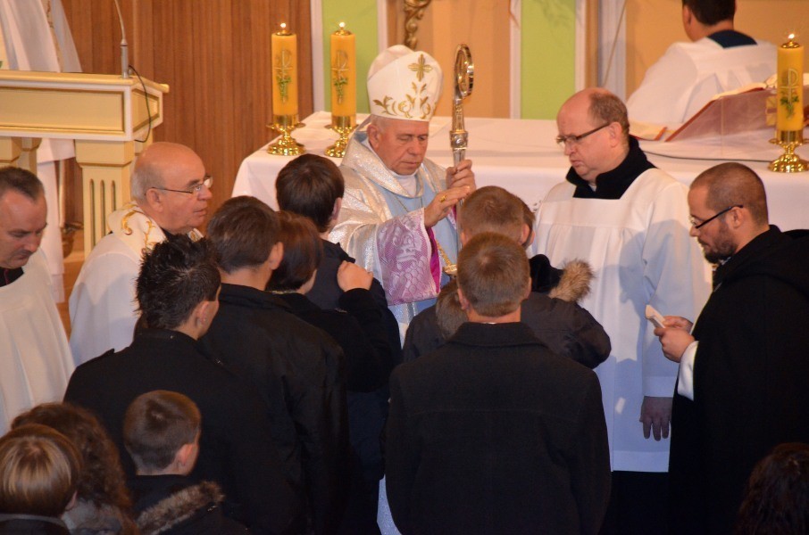 Prosimy Cię byś skierował do nas wszystkich swe pasterskie słowo, byś udzielił tym młodym sakramentu chrześcijańskiej dojrzałości, oraz byś otoczył swą kapłańską modlitwą ofiarując Chrystusowi naszą wiarę, nasze nadzieje i naszą miłość.