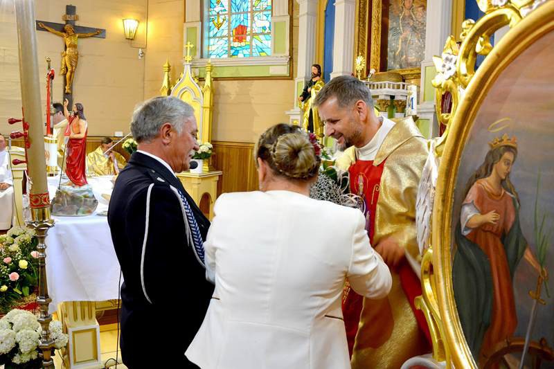 Następnie proboszczem został Ojciec Marian Węsak, który był z nami 5 lat. Kontynuując remont kościoła wymienił podłogę i odnowił obrazy św. Barbary i św. Agnieszki.
