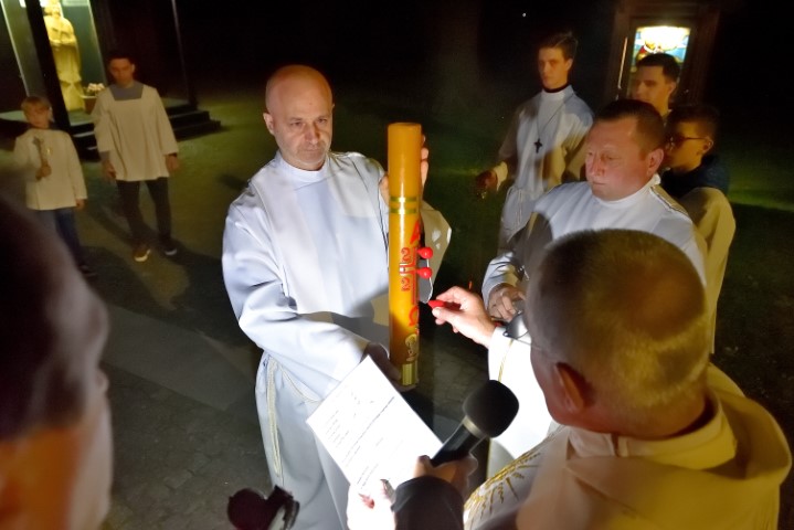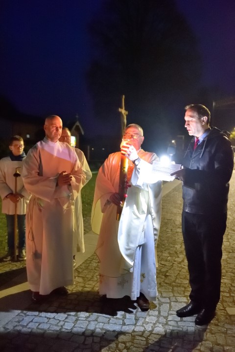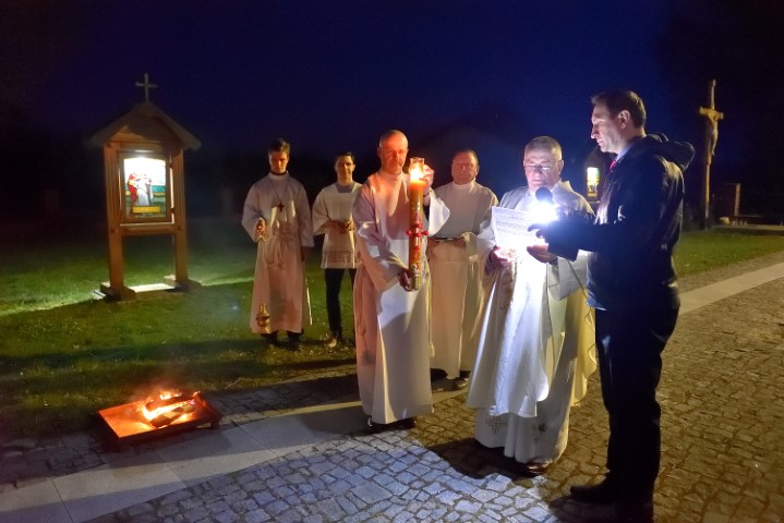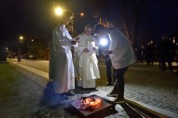 Liturgia światła rozpoczyna się po zachodzie słońca. Zazwyczaj na zewnątrz kościoła kapłan święci ogień, od którego następnie zapala się Paschał – wielką woskową świecę, która symbolizuje zmartwychwstałego Chrystusa.