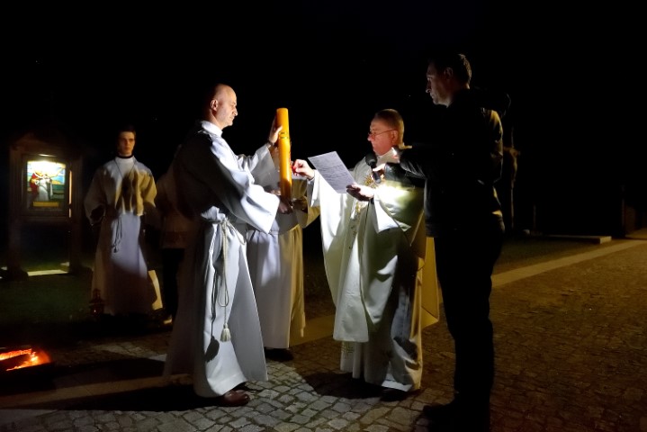 Następnie Paschał ten wnosi się do okrytej mrokiem świątyni, a wierni zapalają od niego swoje świece, przekazując sobie wzajemnie światło. Niezwykle wymowny jest widok rozszerzającej się jasności, która w końcu wypełnia cały kościół. Zwieńczeniem obrzędu światła jest uroczysta pieśń (Pochwała Paschału) – Exultet, która zaczyna się od słów: “Weselcie się już zastępy Aniołów w niebie! Weselcie się słudzy Boga! Niech zabrzmią dzwony głoszące zbawienie, gdy Król tak wielki odnosi zwycięstwo!”.